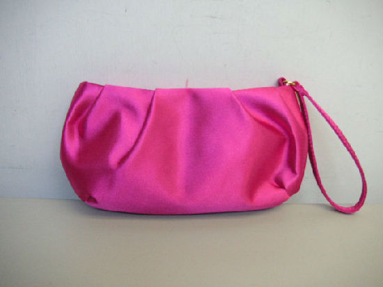 • Satin with PVC bottom pleated wristlet bag.