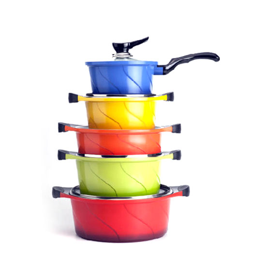 This sauce pot set includes four casseroles and one cooking pot with a matching design. The non-stick ceramic coating allows easy cleaning. This sauce pot set is an ideal addition to complete your kitchen.