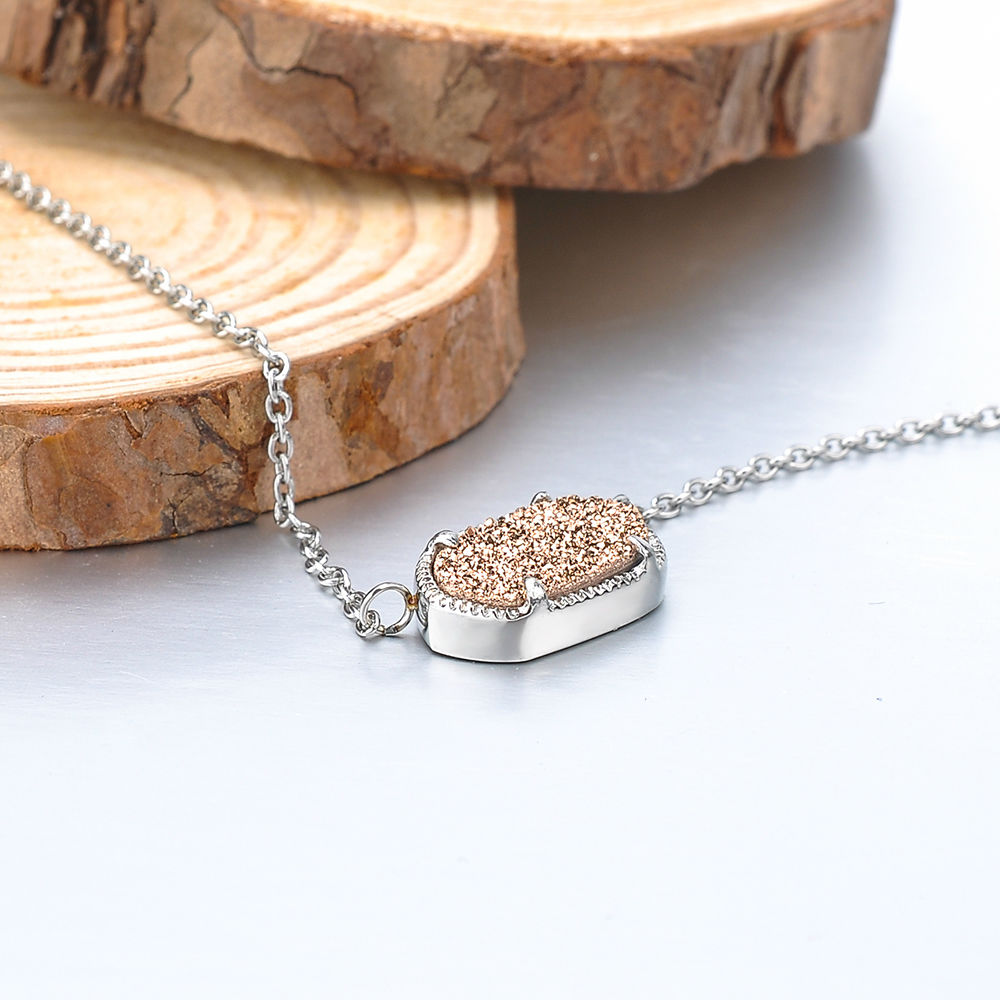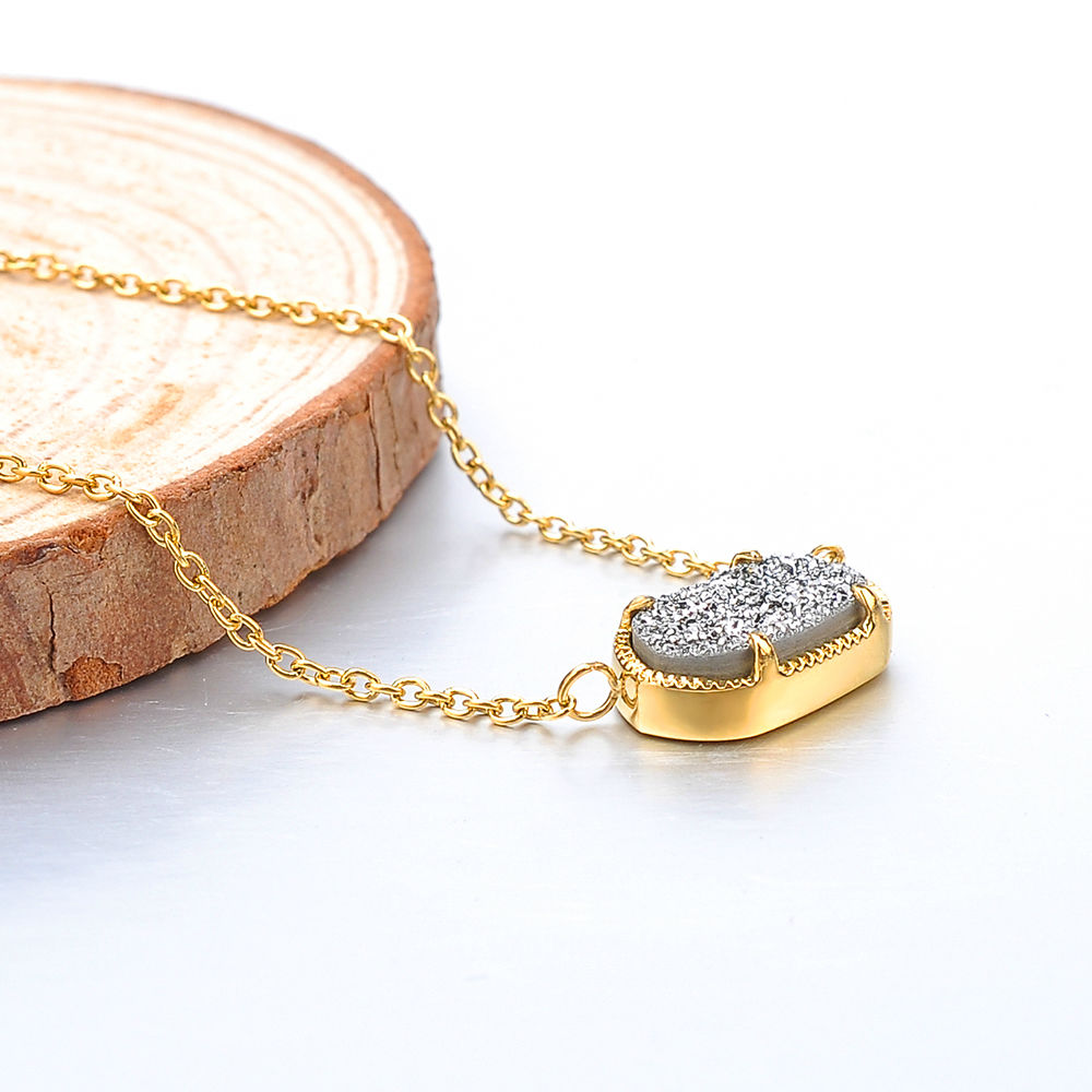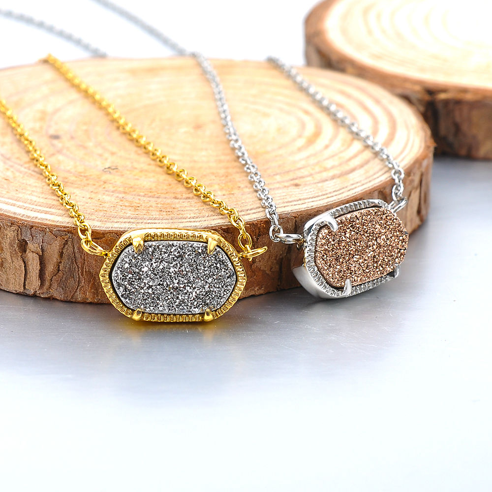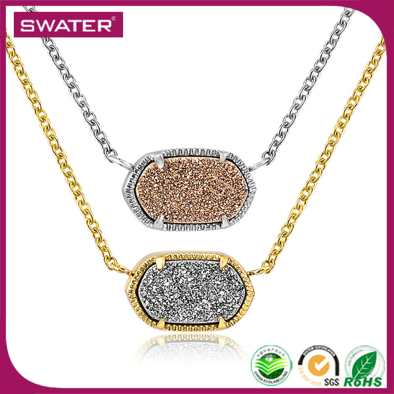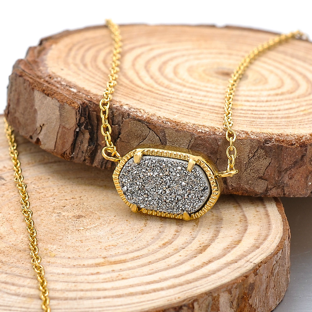 Saudi Women Stainless Steel Natural Druzy Stone 18K Jewelry Gold Necklace