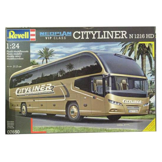 This is a scale coach featuring a Cityliner. It is made of plastic and is gold in colour. The model is a perfect collectable for home and interior decorations.