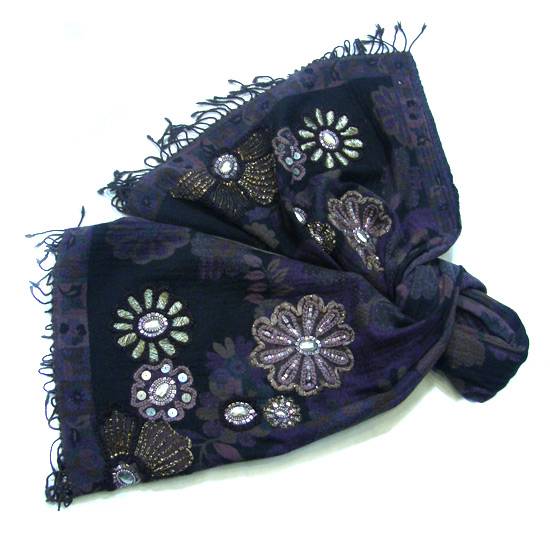 The scarf is designed with fine embroideries in flower pattern. All the floral embroideries are sewed on shiny beads. Moreover, there are fringes decorated on its edges. It is soft and comfortable to wear.
