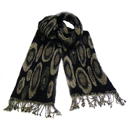 This scarf is woven with intricate and oriental designs and it is decorated with fringes. Scarves in assorted colours and designs are available. This beautifully designed scarf is sure to add a touch of class to your outfit.