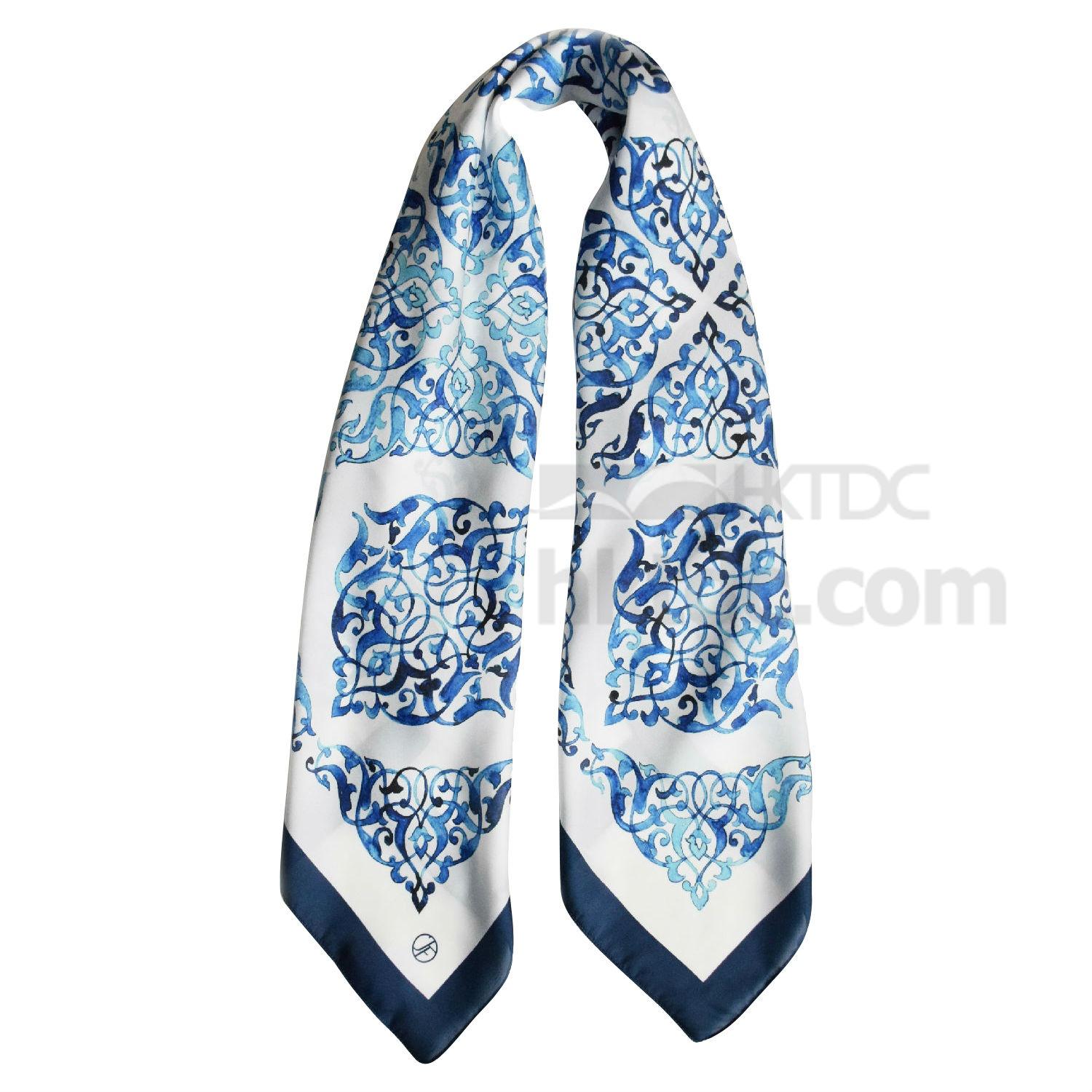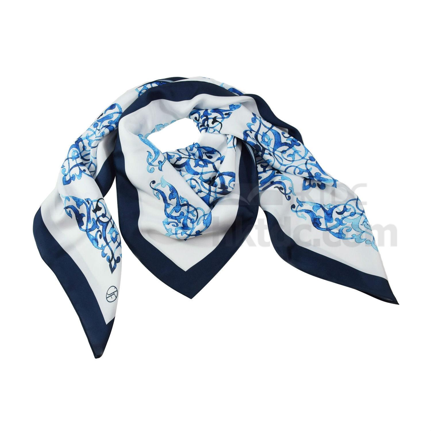 Embrace effortless summer flair with this scarf tied to your waist. The intricate patterns of floral inspire steeps in a mesmerizing blue, making a lasting impression with an elegant undertone. Its square-cut and silk twill tailor further promises a luxurious finish for everyday pairing.