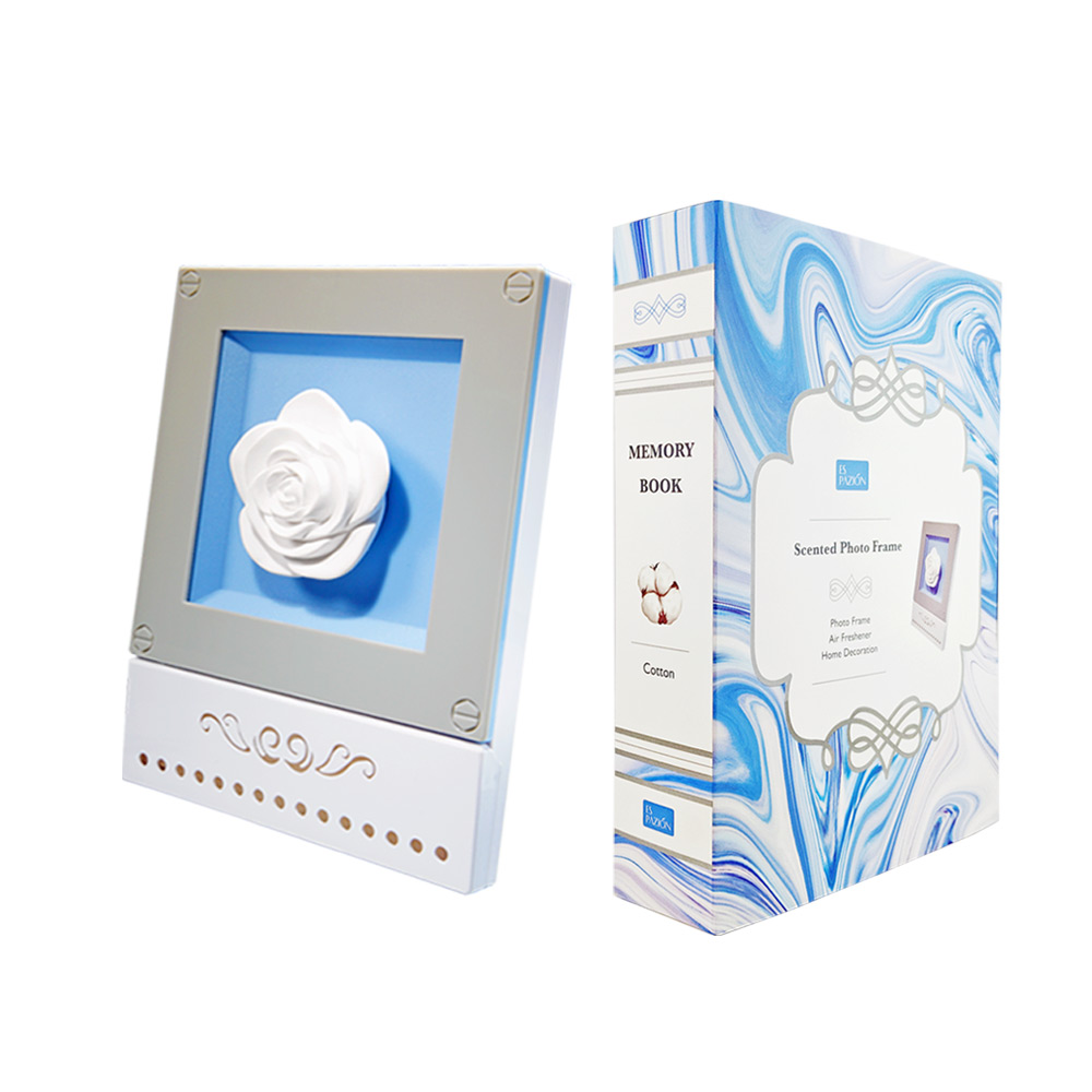 • Photo Frame + 1 flower for decoration (silica gel ingredient) + Fragrance pad (EVA, 8.2g x 2pcs) inside of printed paper box.