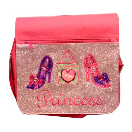 This attractive school bag spotlights silver-toned glitters as well as embroidered motifs of high-heel shoes and handbag. It offers a stylish way for your little girl to organize her stationery and books. The handy school bag is designed with a flap-open closure.