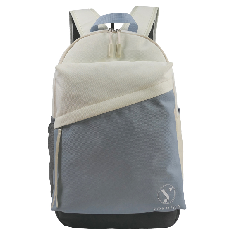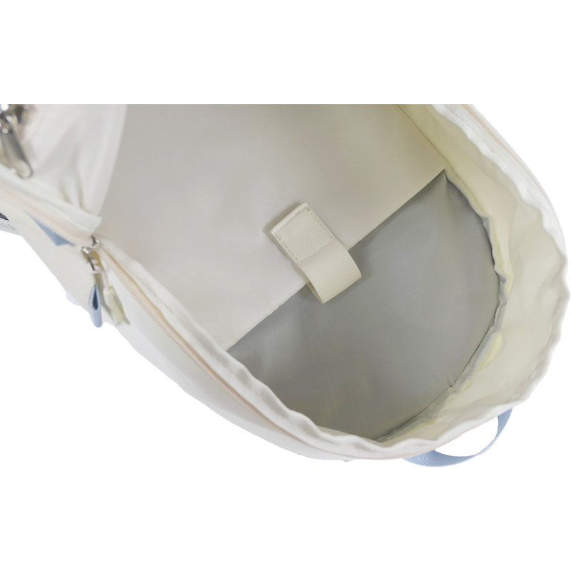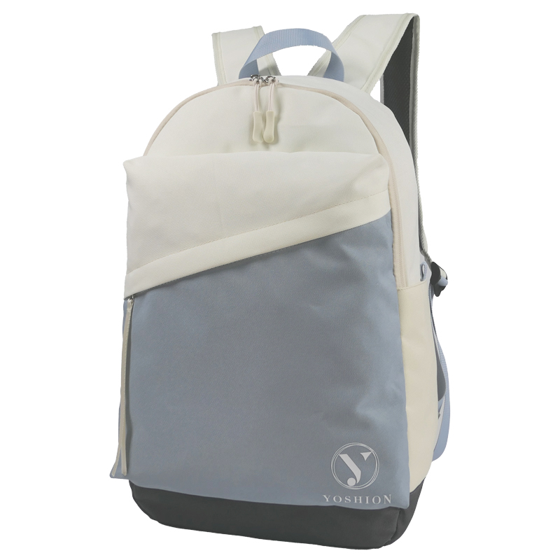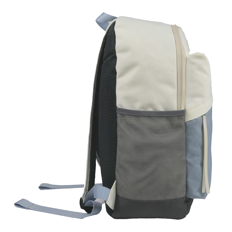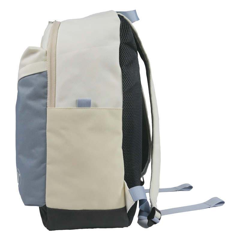 A soft combination of off-white, haze blue, and dark gray creates a clean, versatile look. The low-saturation hues are timeless and suitable for school, work, or travel. A debossed brand logo on the front adds a subtle touch of quality.