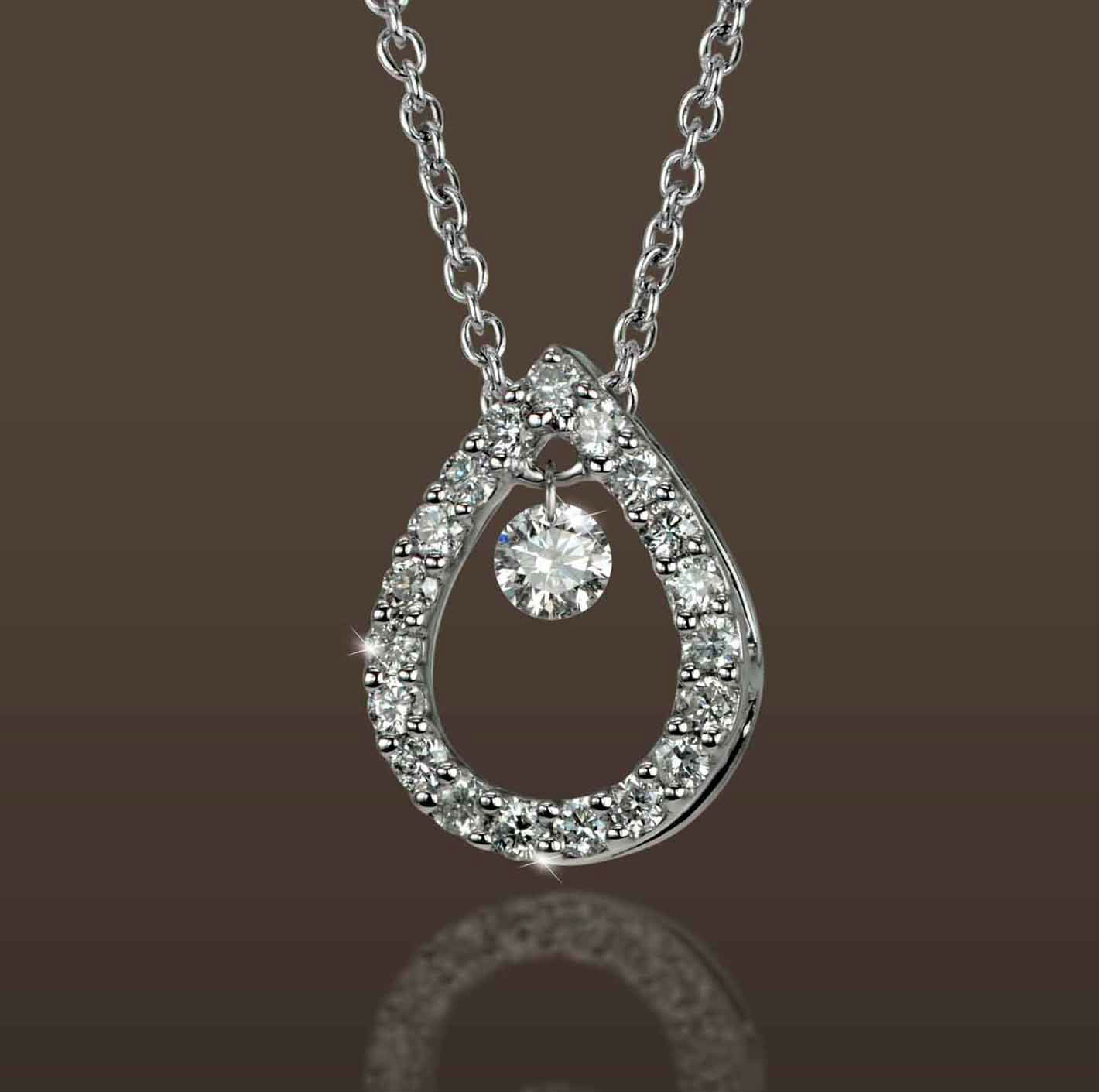 Elegant pendant of scintillating diamond with 0.23cts brilliant cut diamonds in 18k white gold of 3.11gm weight.