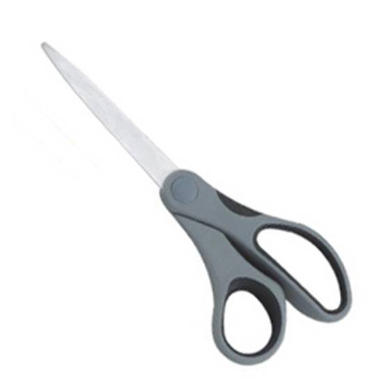 This is a pair of scissors for various purposes. It is made of high quality material. The handle is gray in color and has ergonomic design to fit your hand.