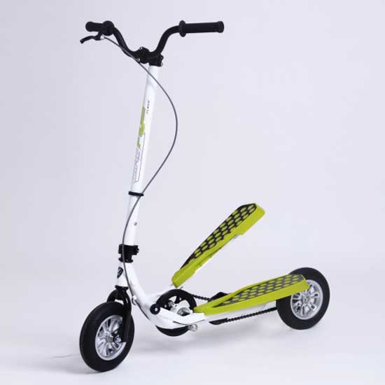 Displayed here is an eye-catching scooter bike with an innovative design. It is equipped with a hand brake for enhanced safety. This creative one functions as a hybrid of bicycle and kick scooter.