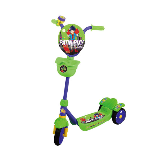 This is a scooter bike with a green finish for a smart look. It is constructed with a sturdy frame and durable wheels for kids' safe riding. It makes a great ride on toy for your sporty child.