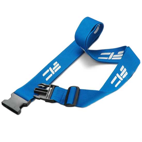 The polyester lanyard features an adjustable strap with a buckle closure. It showcases high-quality screen-print patterns with vivid color hues. This lanyard makes an excellent promotional giftware article.