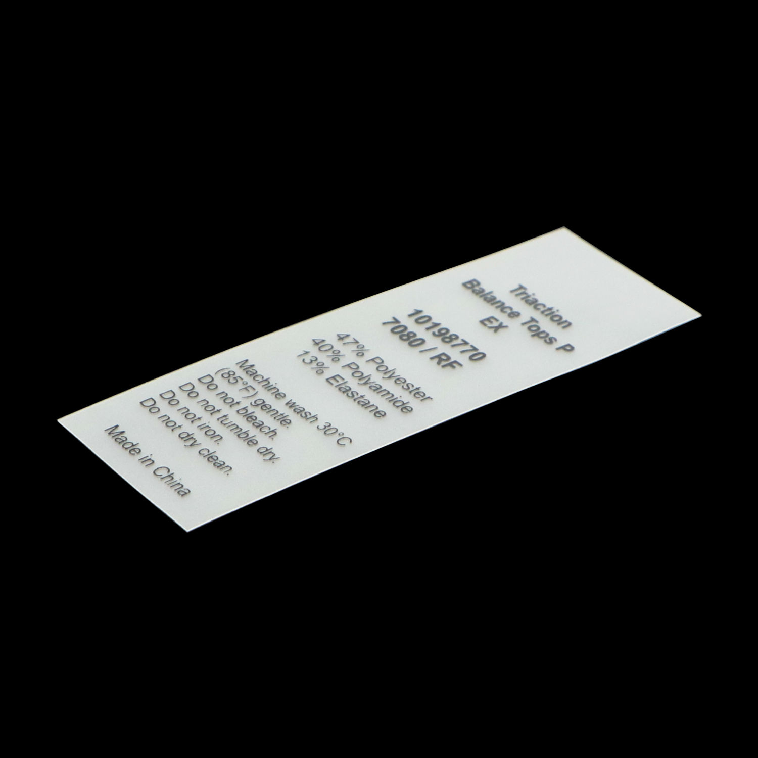 This label is made of semi transparent TPU and is excellent for labeling garment products. It comes in a rectangular shape and is screen printed with product data and care instruction. The TPU label flaunts a durable and functional design and can let customer know more about your product.