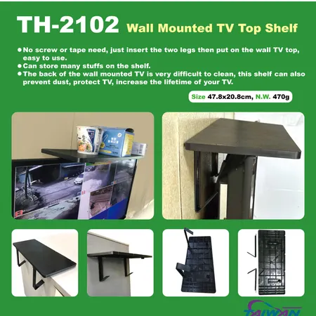 *No screw or tape need, just insert the two legs then put on the wall TV top, easy to use.