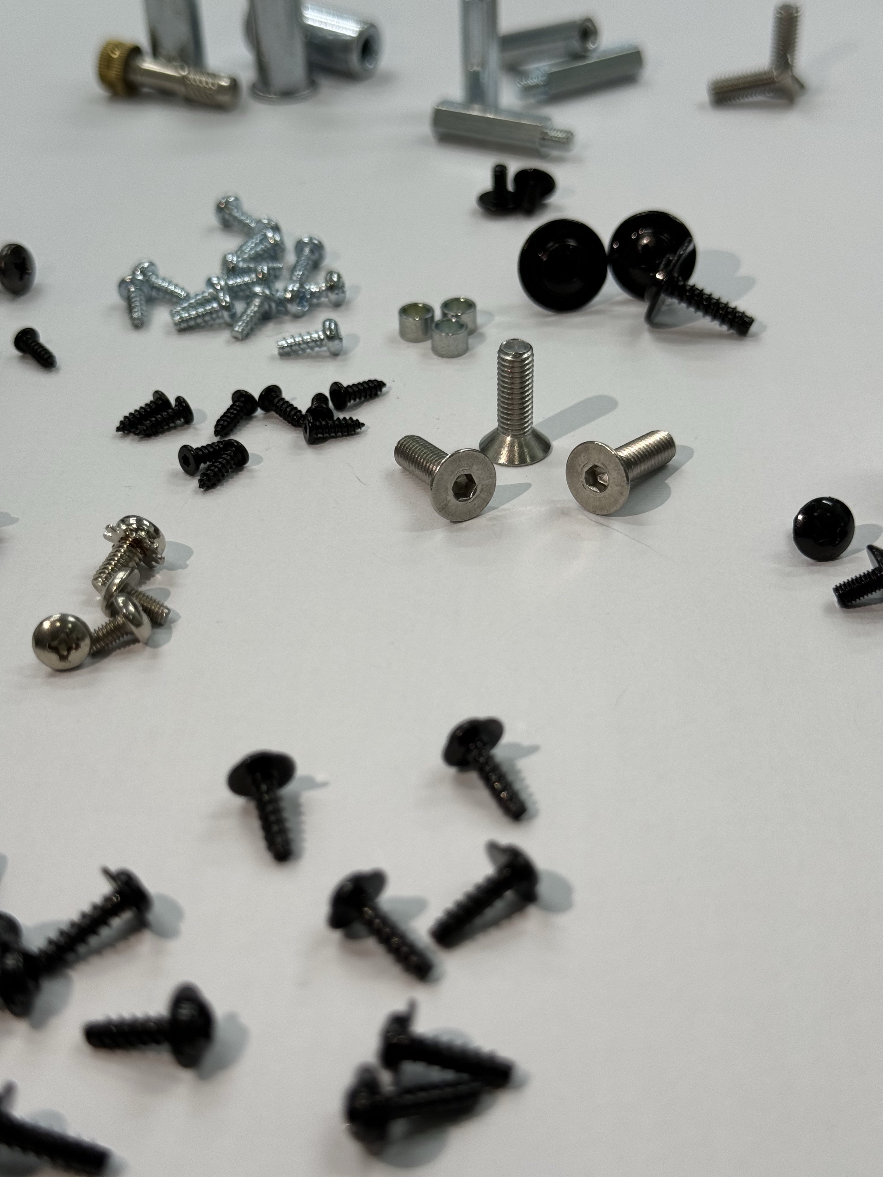 • Technical details: Screw head options (Phillips, Slotted, Allen..), thread type (fine, coarse, full-thread..), and material hardness.