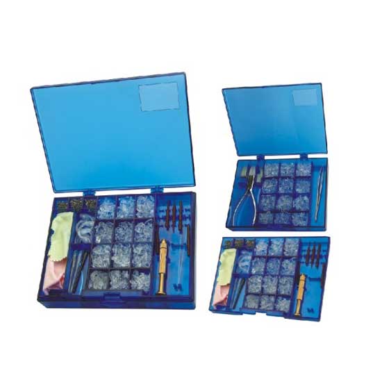 The presented screw set is well packed with an opaque blue box. It is divided into various compartments for easy sorting. Nose pads screws, washers, caps, staple sockets and other assorted eyewear accessories are included in this screw set.