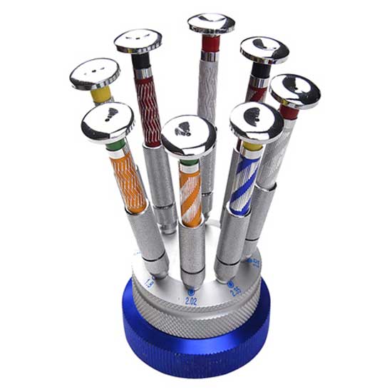 Featured is a set of screwdrivers with precision ground blades for various assembling tasks. They are compact in construction for easy control using the fingertips. The 8-piece screwdriver set is ideal for repairing eyeglasses, jewelry, toys, etc.