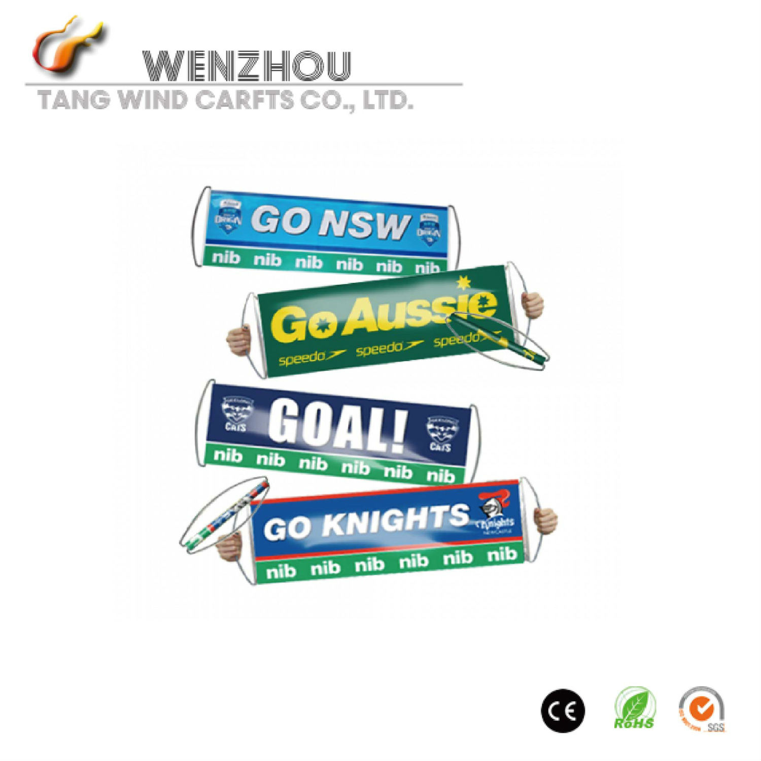 Showcased is a cheering scrolling banner featuring stylishly printed text and icons. The well-designed banner is easy to use perfect for showing your support for your favorite team. Equipped with sturdy handles on the sides, this scrolling banner allows you to hold it comfortably.