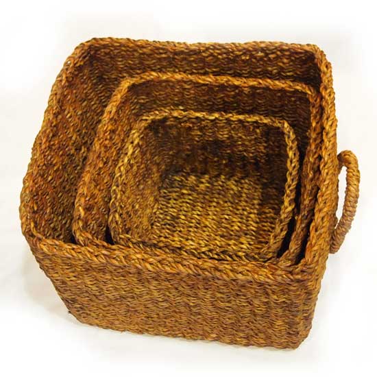 This set of sea grass baskets comes with square shape in different sizes for catering your various needs. Designed with a handle, the basket set ensures convenient carrying. Bring these delicate sea grass baskets home for placing sundry household items.