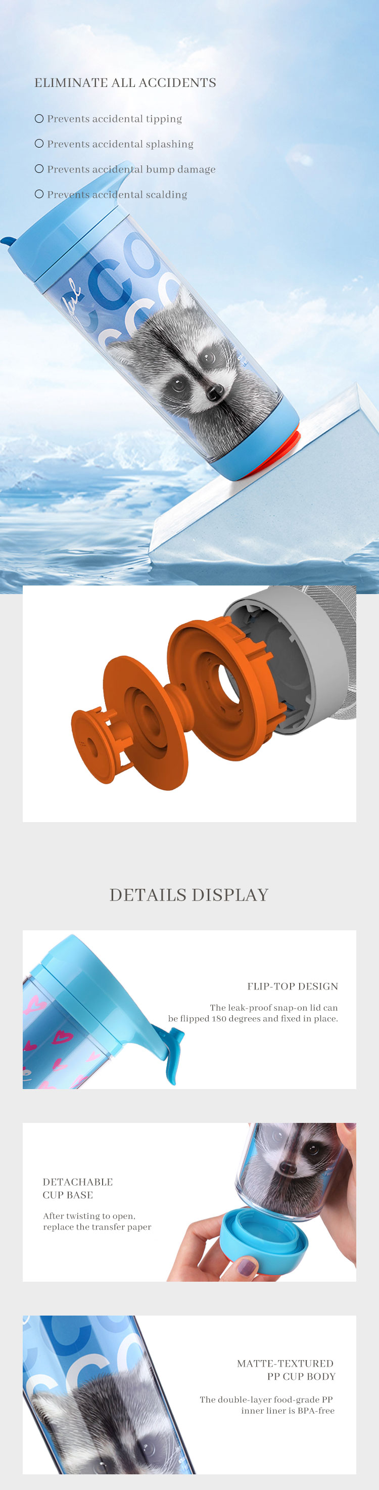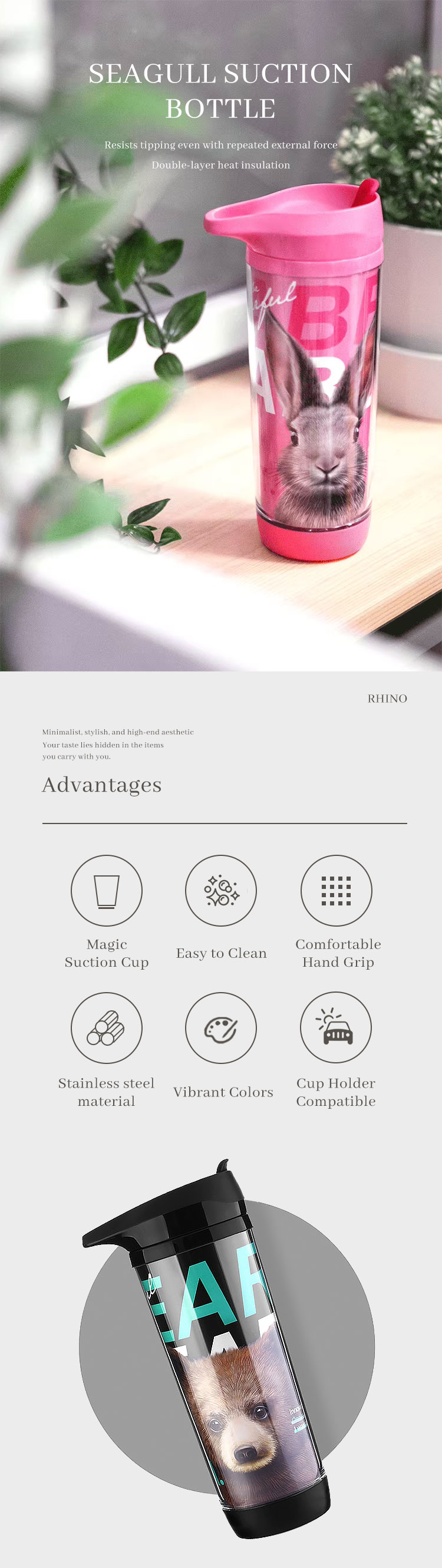 • Double-layer cup body for heat insulation and anti-scald protection