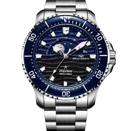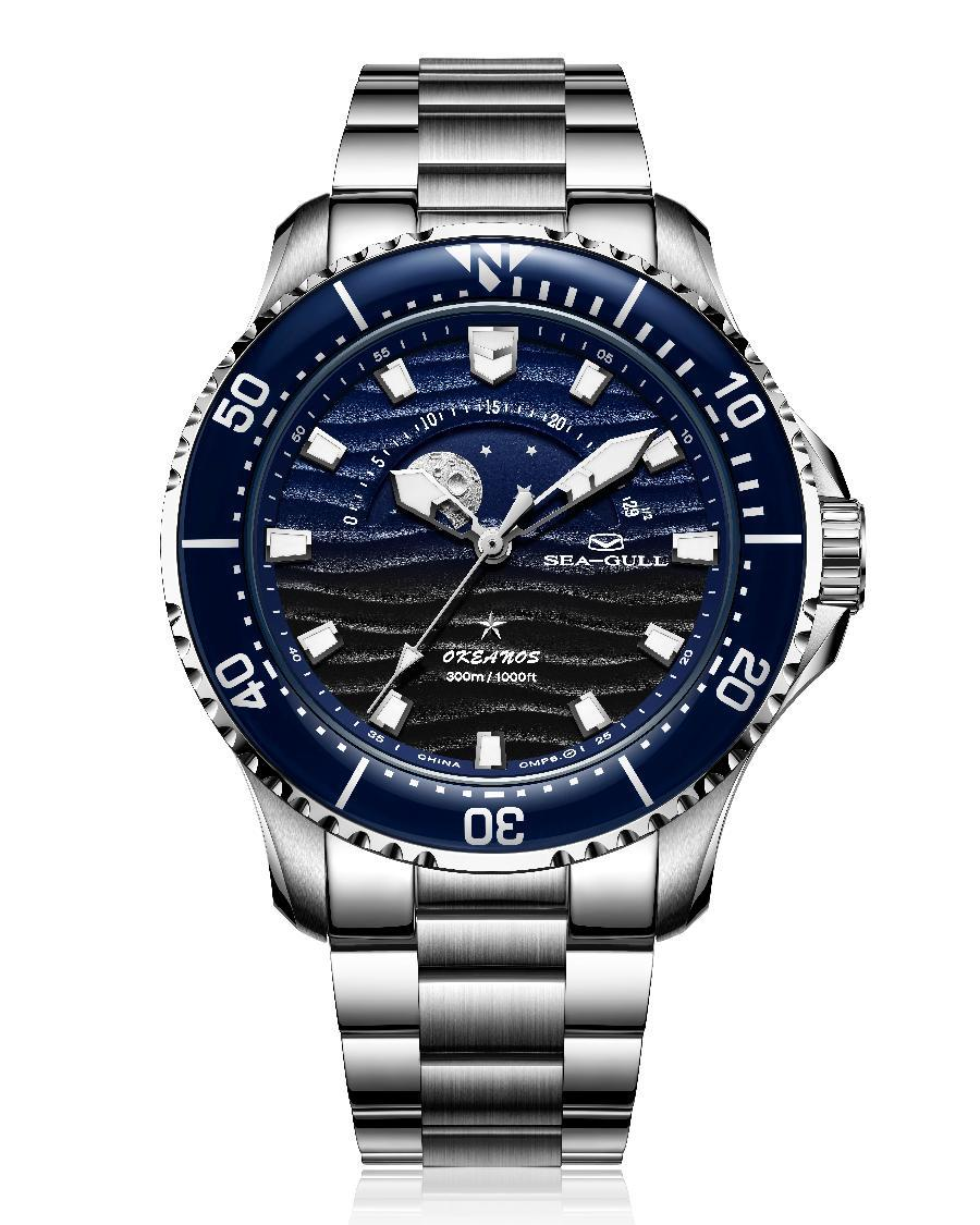The gradient blue-black dial evokes the ocean’s mysterious depths, with sand-textured wave patterns mirroring real tides. Featuring an instant-date display and Seagull’s in-house ST2130 movement, this 300-meter dive watch conquers abyssal pressures with ease.