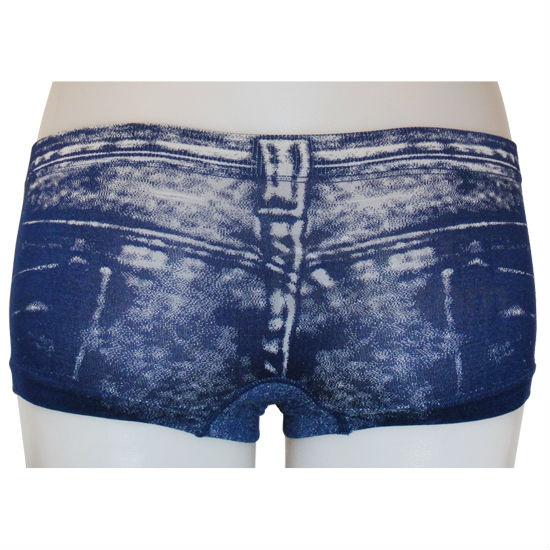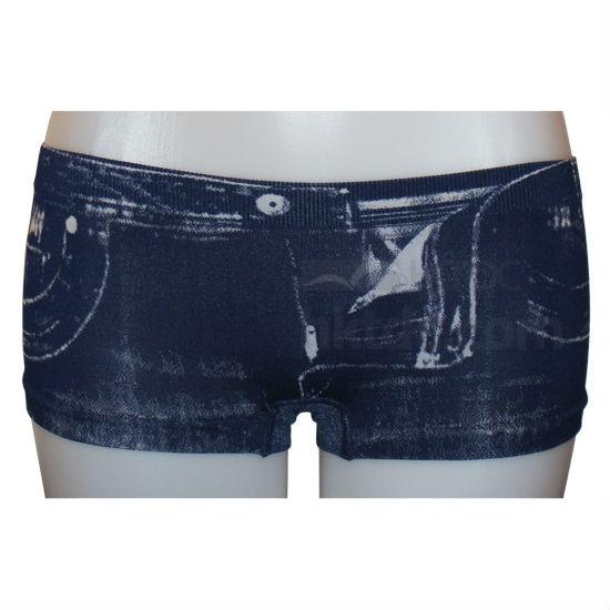 Showcased is a stylish basic and comfy boyleg that is seamless and trimmed. Flaunting an unzipped denim shorts design, this panty also features a denim finishing effect for added lifelikeness. Made with 90% nylon and 10% spandex, the seamless pantie is a perfect undergarment to match with your skinny jeans and miniskirts.