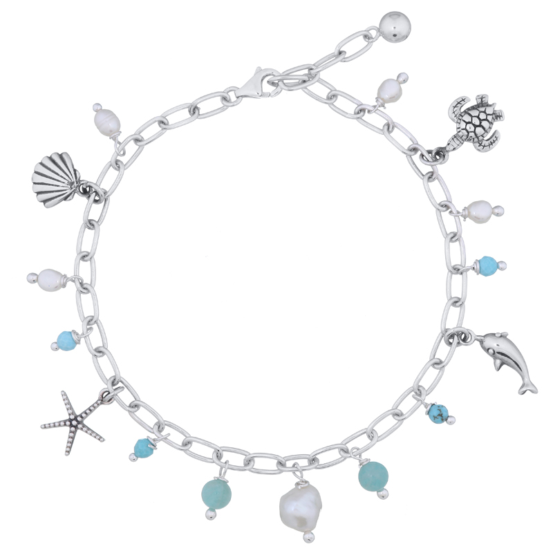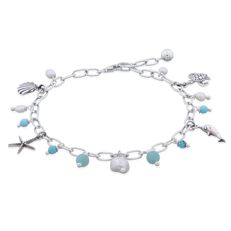 Seaside Bracelet Seashells Starfish Turtle Charms 925 Silver