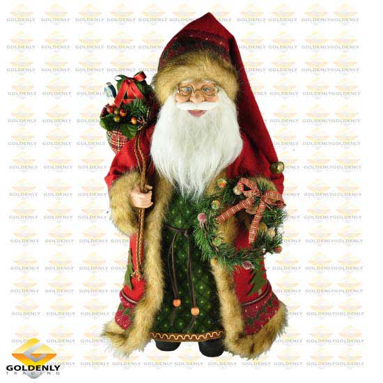 The seasonal Santa Claus decoration features a detailed and lifelike design. He wears a santa hat and an overcoat which are trimmed with brownish fur. The decorative Santa Claus impresses you also with his benign smile.