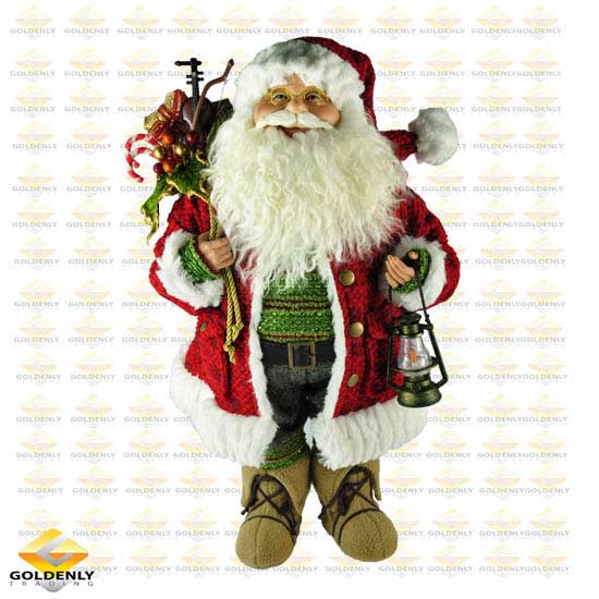 The seasonal Santa Claus decoration is finished with an attractive standing posture. He wears a sharp red pallet jacket and santa hat trimmed with white fur. Moreover, this festive Santa Claus delights everyone with his cheerful countenance.