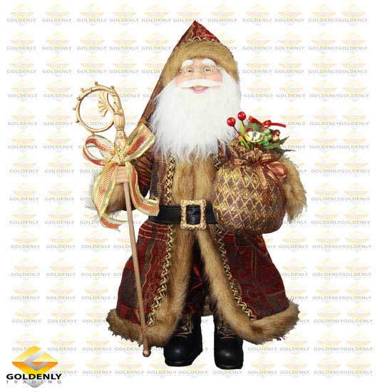 The seasonal Santa Claus decoration features meticulous craftsmanship and an attention-getting design. He is gripping a puffy gift bag and a brilliant cane which is knot-trimmed. This old man makes you feel relaxed with a delightful and benign smile.