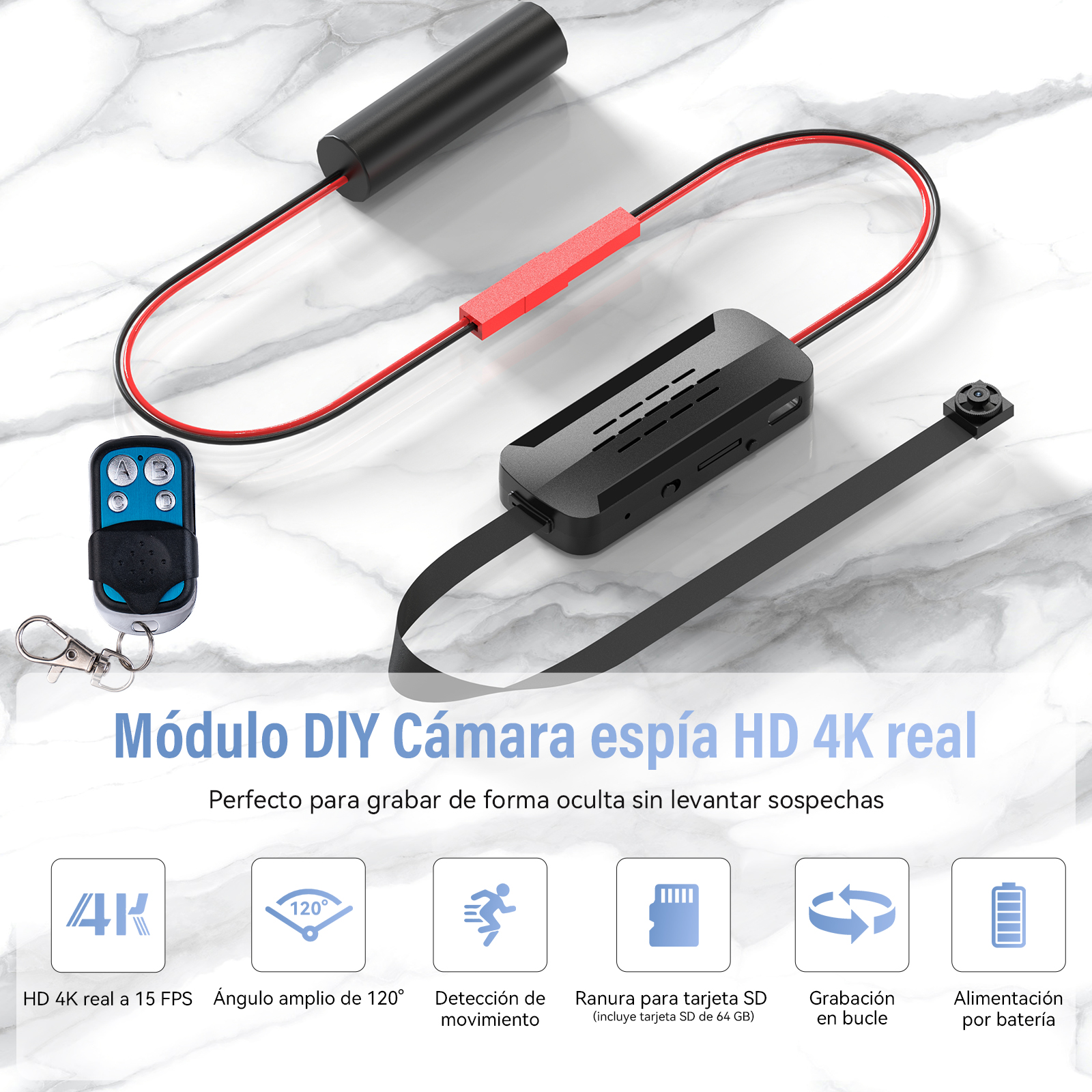 Security Products DIY 4K Pinhole Hidden Camera with Extended Battery Kit