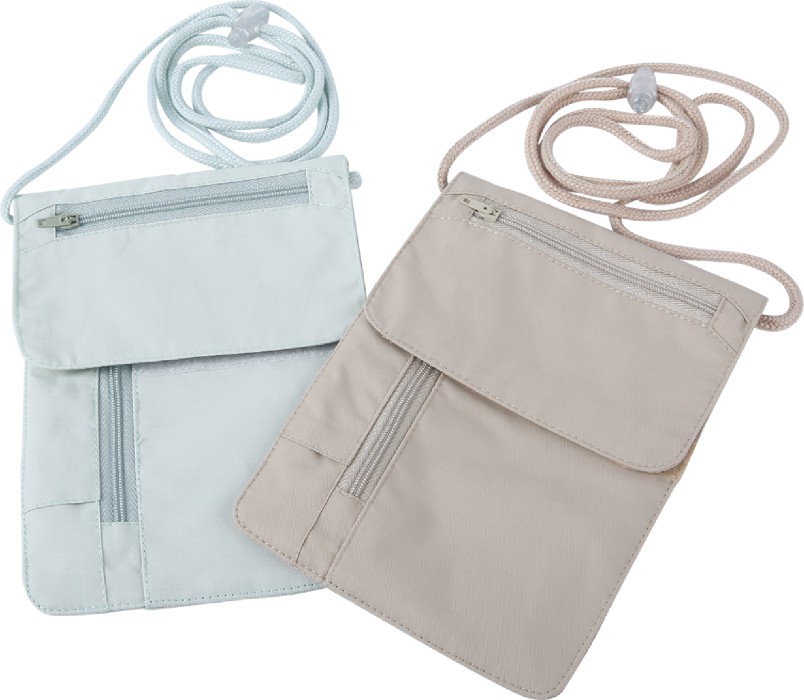 Ultra-lightweight, extra comforrtable, with RIFD safeguard protection in a slim sleek designFront zippered pockets for quick access to essential itemsComfortable soft fleece backing with hidden pocketRetractable neck cord with spring loaded clipMaterial: nylon twill fabric and RFID liningDimension:19x13.5cm