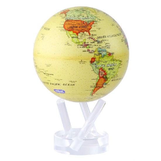 This globe turns peacefully on their own, using only the energy of room light and the force of the earth's magnetic field to simulate perpetual motion. The globe is the first and only solar-powered product to have the solar panels hidden from view. Beneath the detailed graphic, the special solar cells, along with our patented ultra-low-friction motor, silently and calmly turn the globe to reflect the steady motion of Earth.
