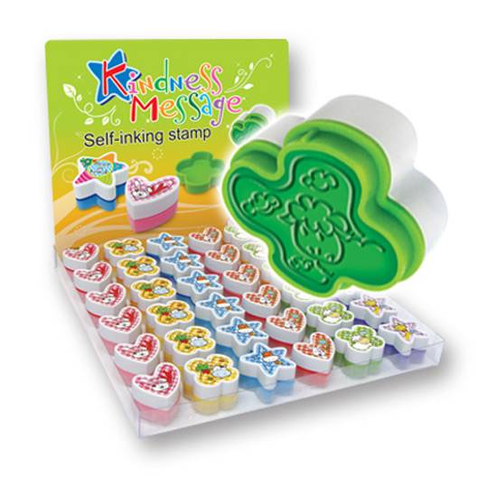 These are self-inking stamps which are available in various shapes with various coloured ink. The self-inking stamps are decorated with cartoon figures.