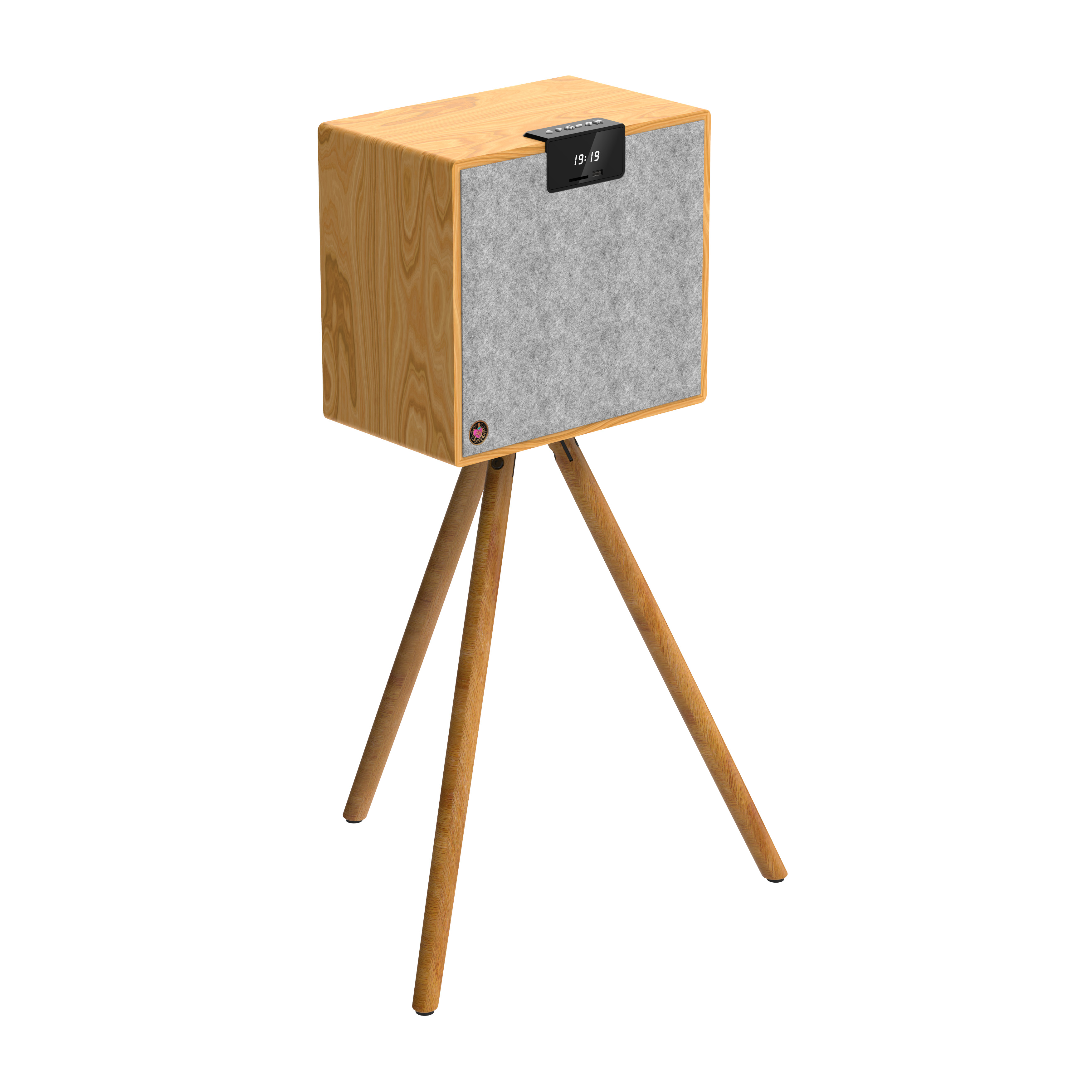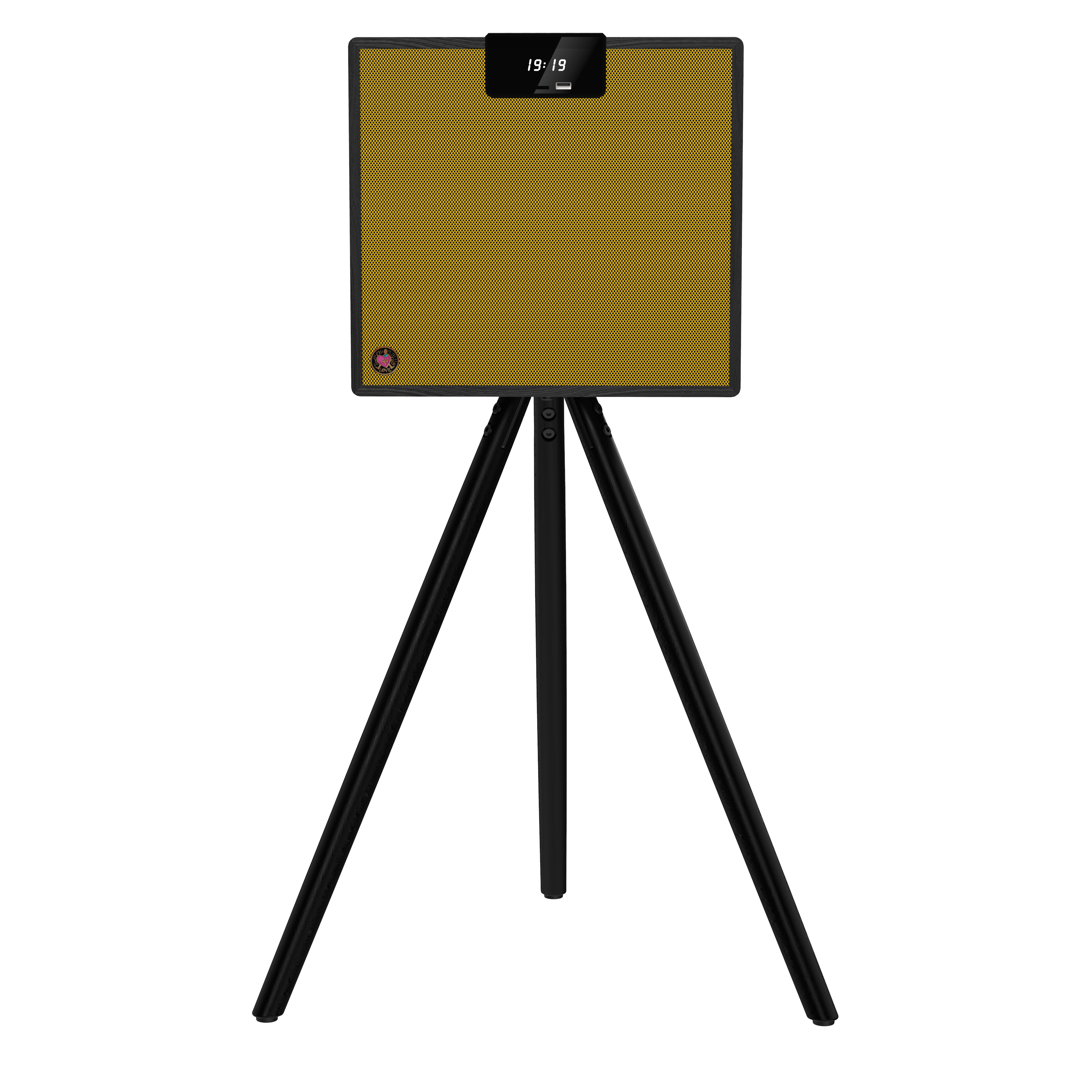 Blending sonic excellence with a sophisticated and classic design, this self-standing wireless speaker will make an impeccable addition to your living space. Set on the three-legged wooden floor stand is a cuboid-shaped wireless speaker framed by a handcrafted wooden casing to deliver a modern, muted and homely appeal. The included speaker is also specially built with top-quality speakers, so it delivers a mix of fully encompassing bass and natural, soft and smooth acoustics for a premium music streaming experience. Fill your space with your favorite tunes with this wireless speaker.