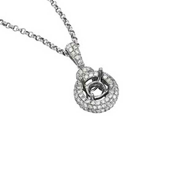Showcased here is a semi-mount pendant covered in diamond stones. It comes in a simplistic round shape that is elegant and classy. A variety of gemstones can be mounted on this pendant as per your needs.