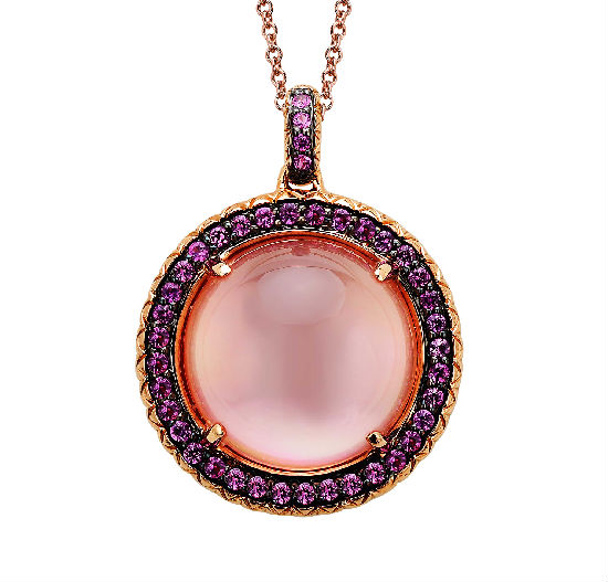 • 18KR pendant with rose quartz and pink sapphire.