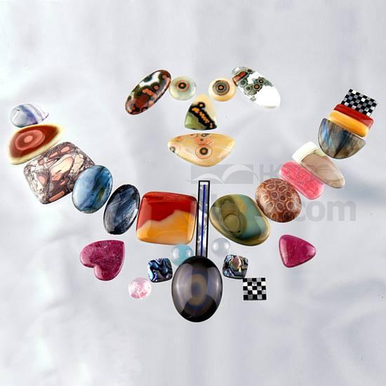 We offer various semi-precious stone Cabochon (Cab), Facets, and Mosaic Inlay in different calibrated sizes and free form.