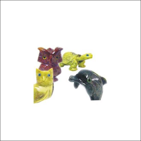 • A range of handmade carvings made of semi precious stones of different colours