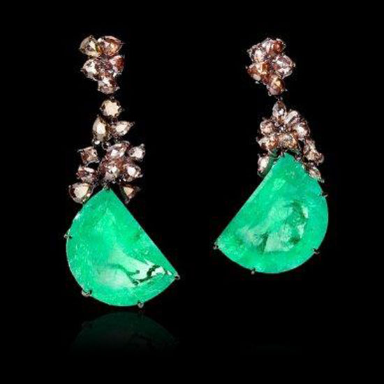 These graceful dangling earrings highlight hemispherical stones in a forest green color. The gorgeous earrings are accented with shimmering tiny stones for added appeal. They will add a touch of elegance to your evening dress.