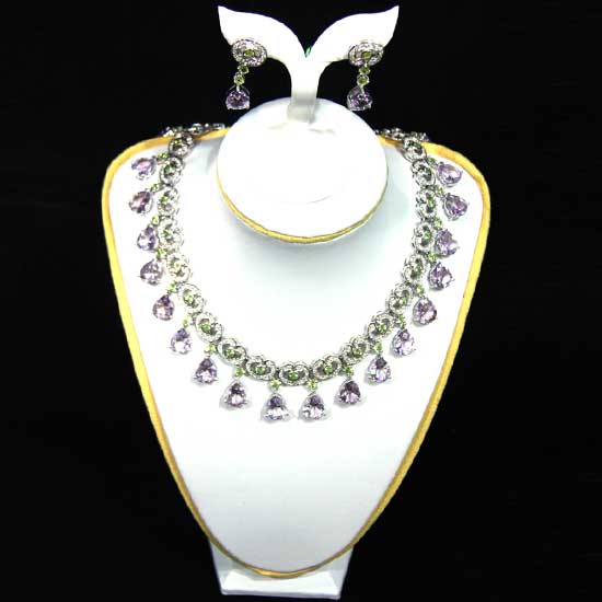 This jewelry set brings you an elegant style with a perfect color match of purple and green. The semi-precious stones are cut and polished with great craftsmanship to show feminine glamor. Ladies will look exceptionally gorgeous with these delicate jewelry items.
