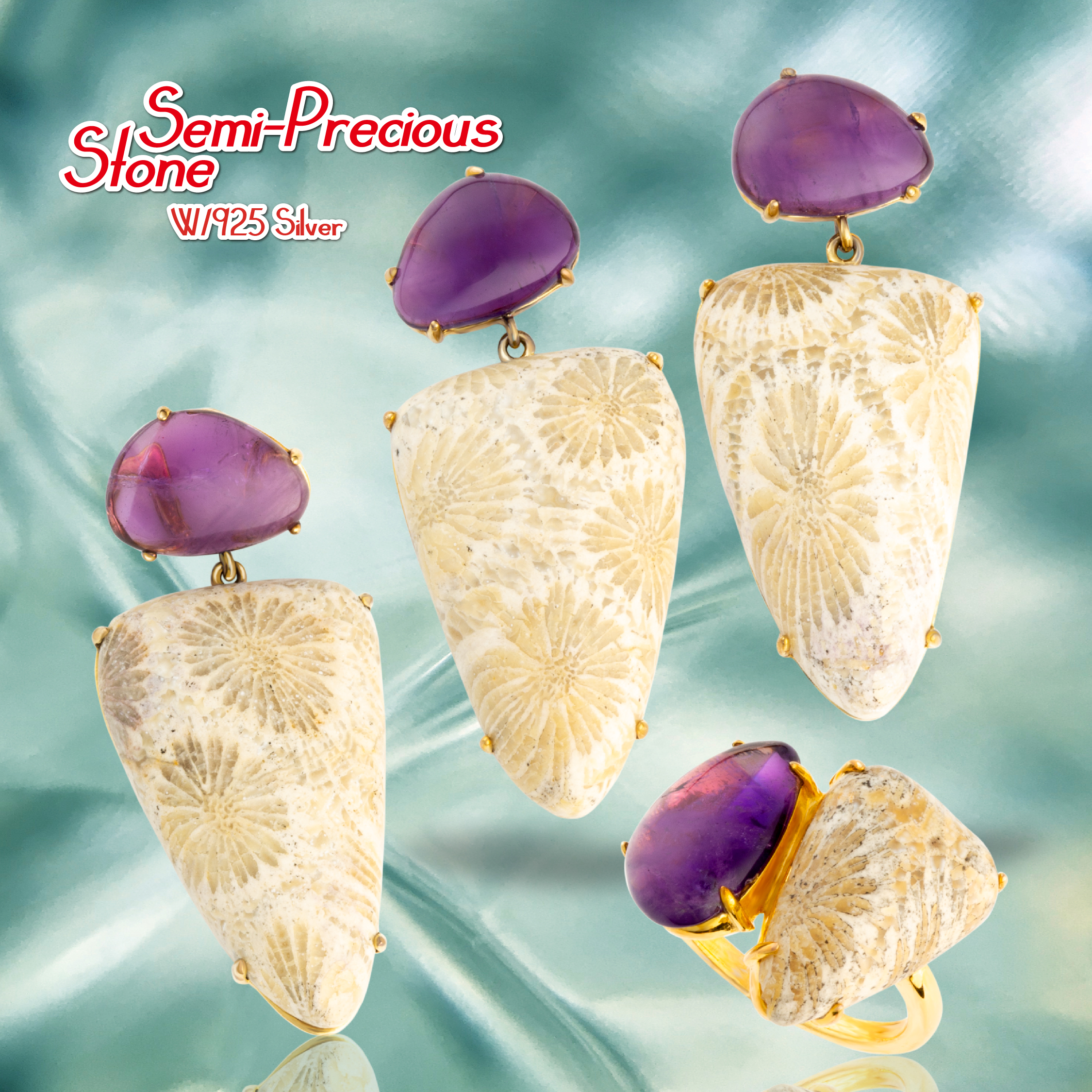 • This daisy jasper with amethyst jewellery set is great for any event and occasion. Its uniqueness makes a great statement to any fashion style.