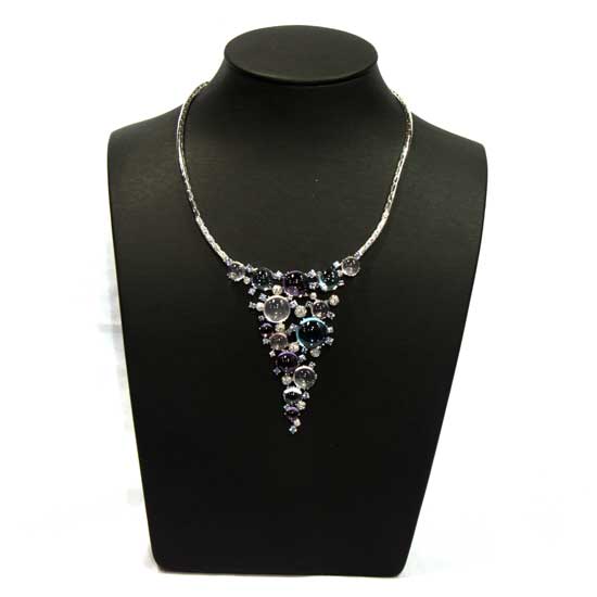 The necklace features a white gold chain embellished with semi-precious stones. The stones feature a round-cut design with exquisite polished details for enchanting shine. Add elegance to your fashion wardrobe with this necklace.