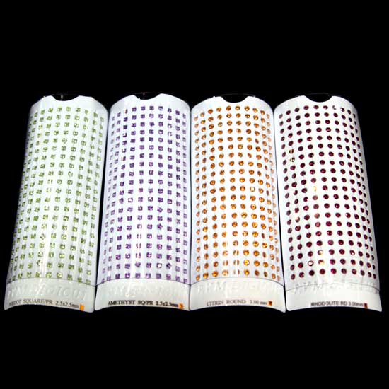 Showcased is a collection of semi-precious stones boasting fancy colors. The stones are cut by European machines to give out gorgeous shine. The wide color choices blend into different jewelry designs perfectly.