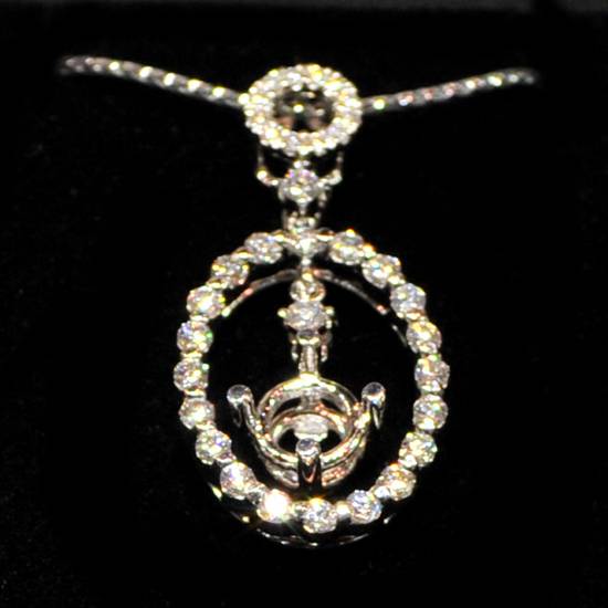 This is a sem-mounting diamond pendant which is made of 18K white gold and decorated with round brilliantly cut white diamonds.