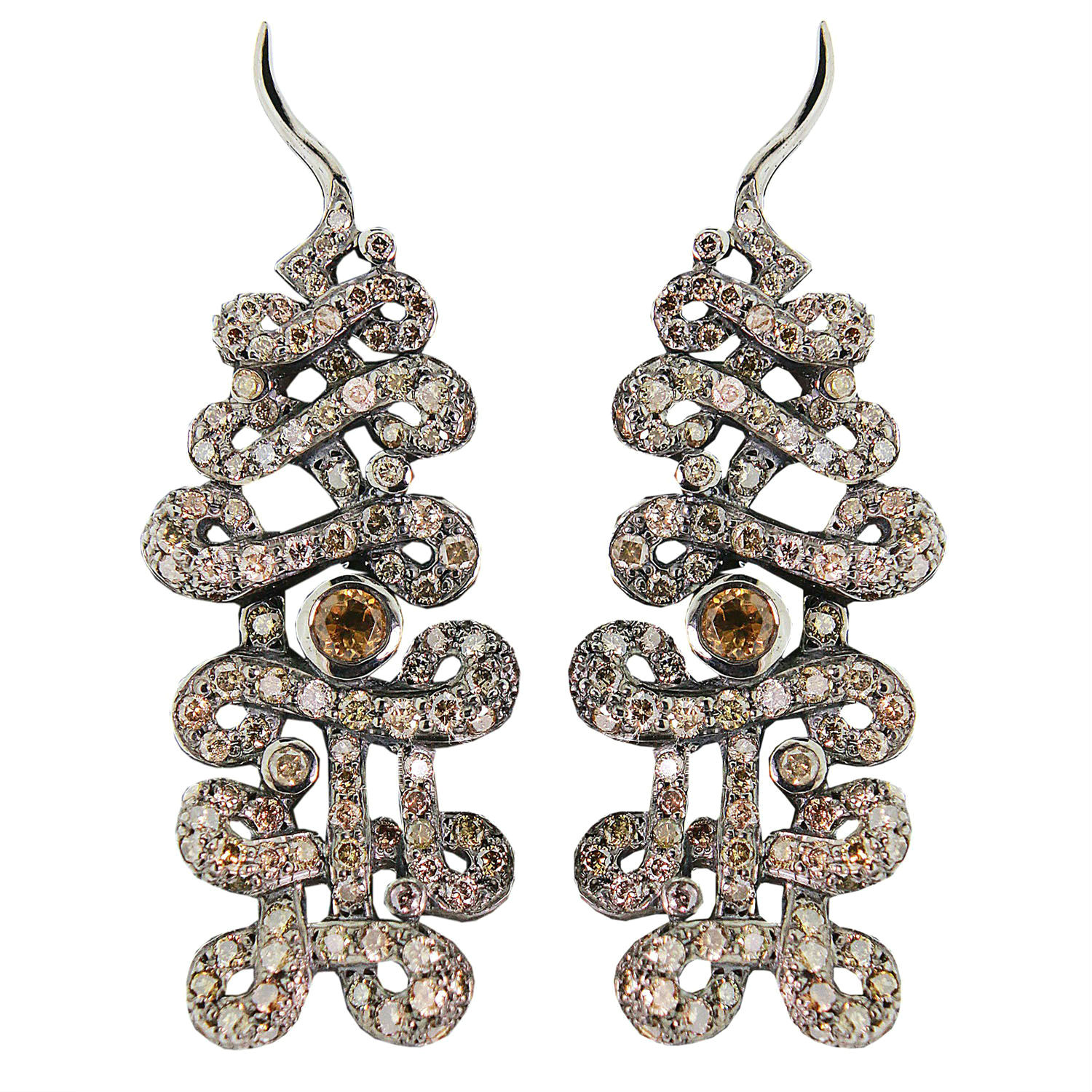 This pair of earrings is skillfully crafted of silver and comes in matching designs. Each earring has a brown diamond as the main stone and is embellished with citrines. The diamonds flaunt aa eye-catching design and are perfect for wearing to special occasions.