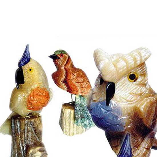 These handmade decorations are made of semi-precious stones. They show beautiful birds with clear and detailed patterns on their bodies. They are also colourful, showing multiple colours on each piece of them.