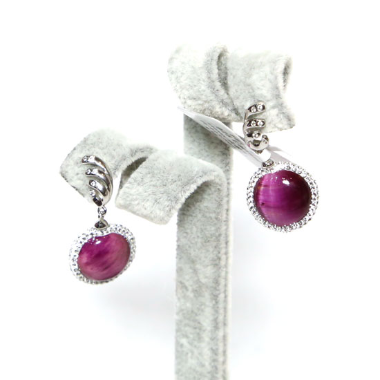 This is a pair of earrings with a chic and elegant design. Each piece features a 925 silver mounting with a round embellishment. The embellishment is inlaid with a big purple stone in a round shape.