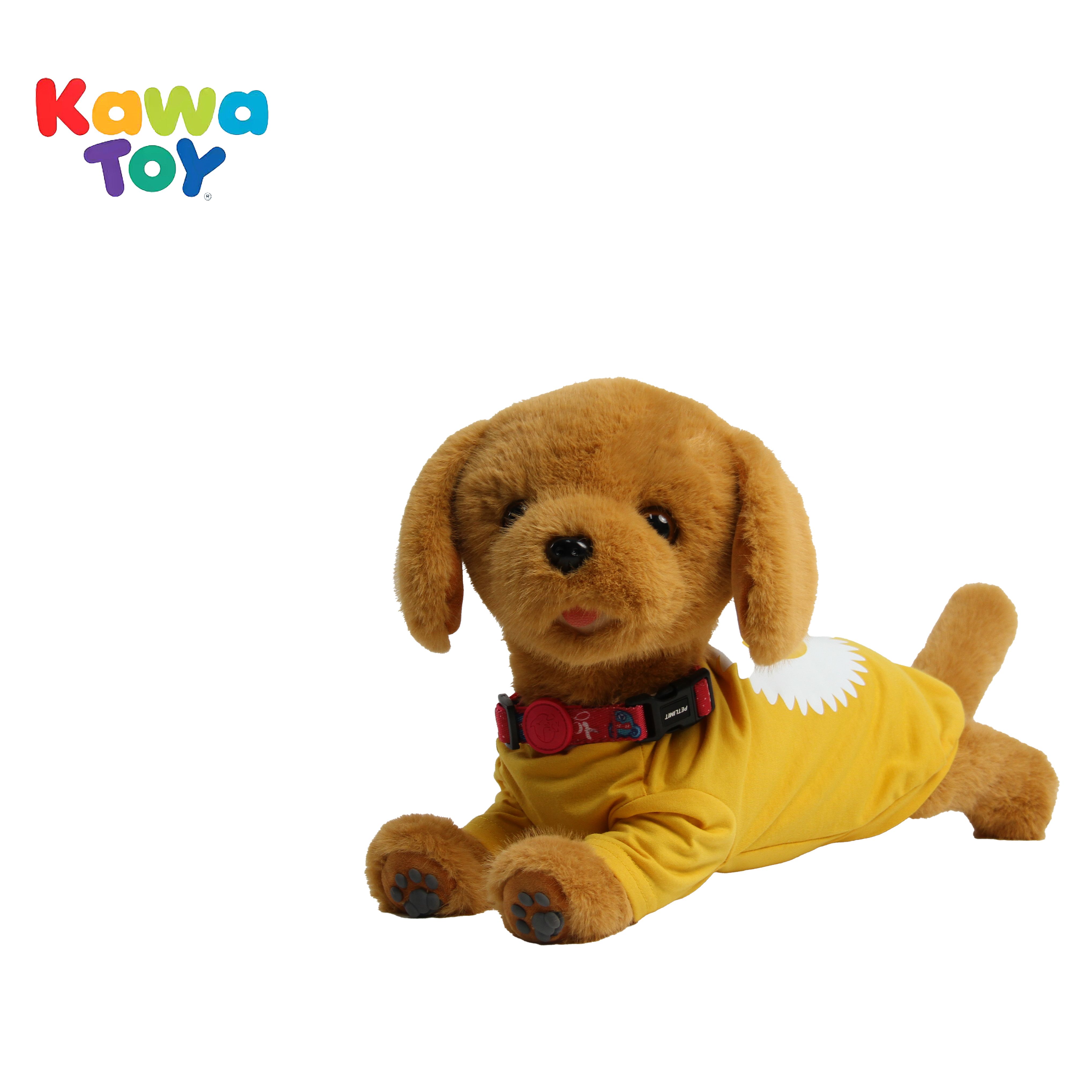 The Serene Companion Golden Retriever is an elegant robotic plush dog that responds to touch with lifelike head turns, tail wags, and soft barks, and features an automatic companion mode for continuous soothing interaction, all powered by a built-in rechargeable battery.