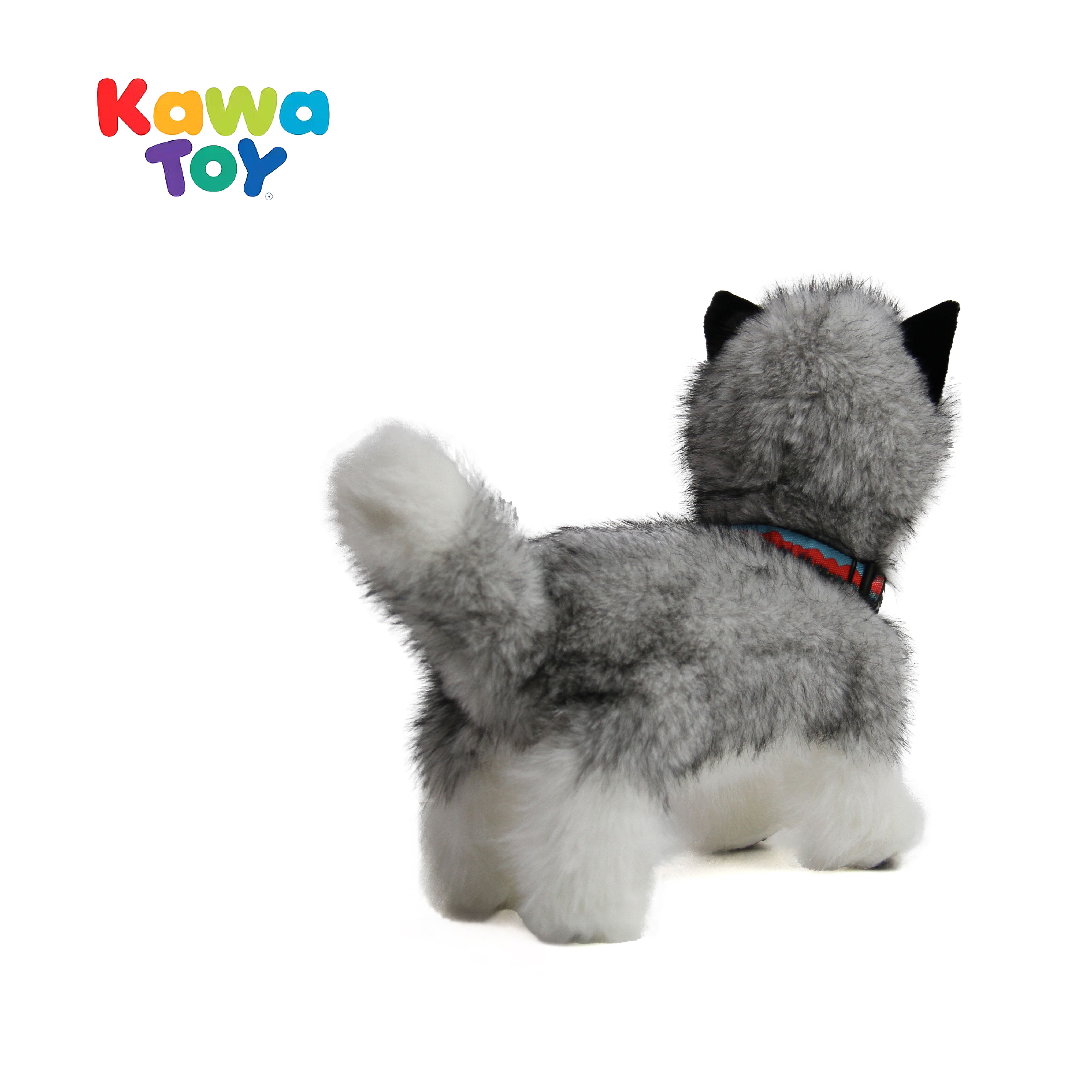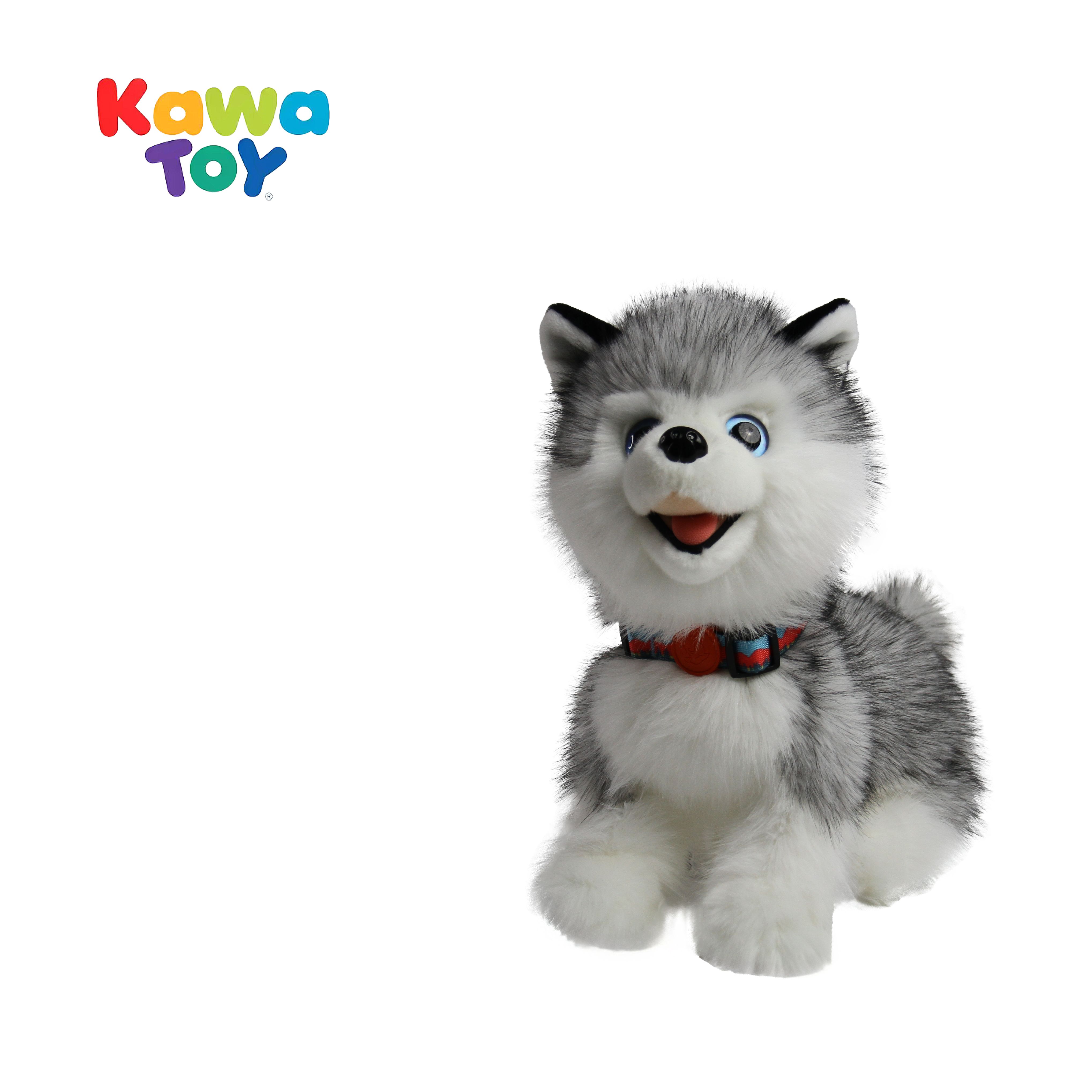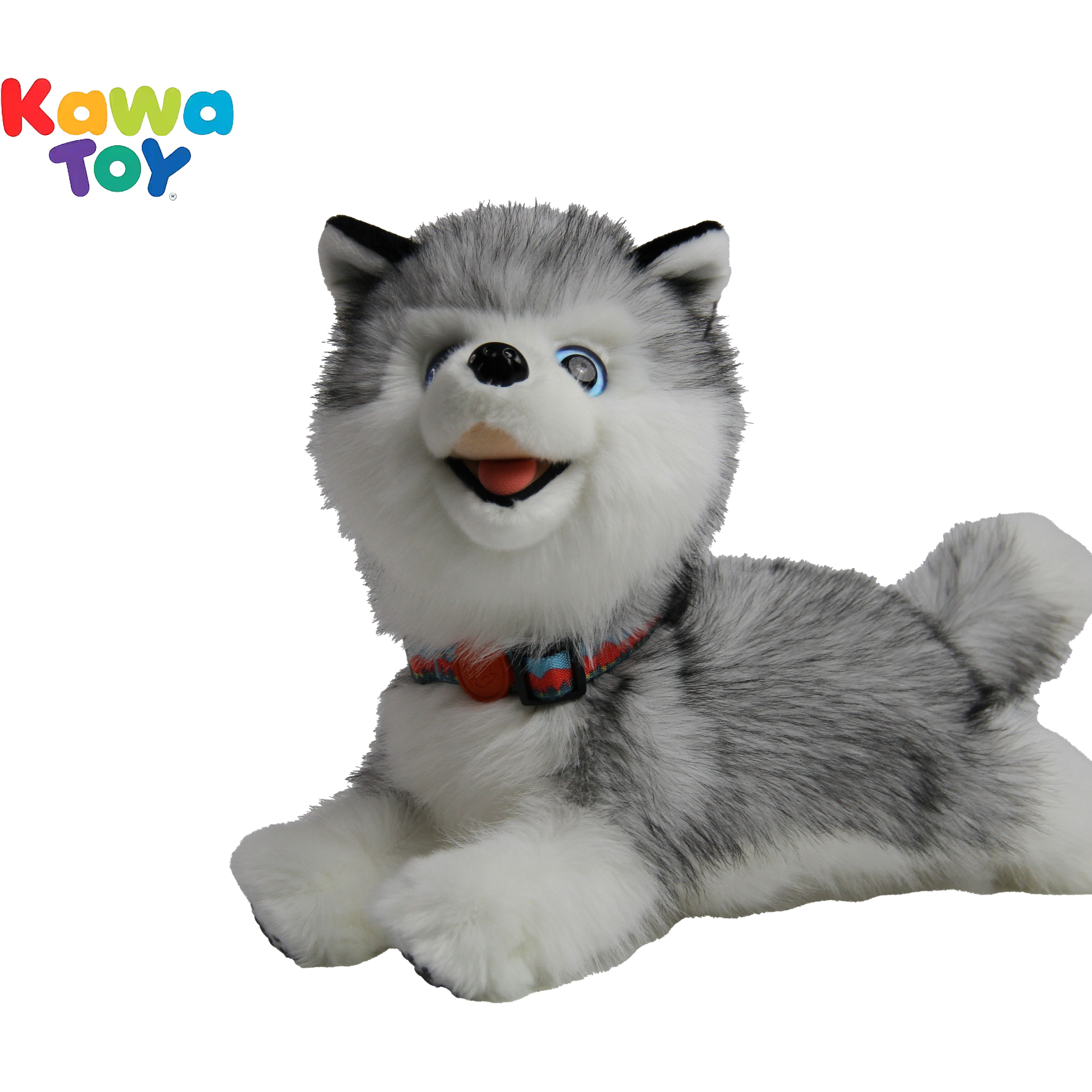 The Serene Companion Husky is an elegant robotic plush dog that responds to touch with lifelike head turns, tail wags, and soft barks, and features an automatic companion mode for continuous soothing interaction, all powered by a built-in rechargeable battery.
