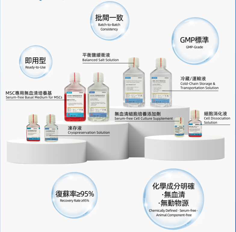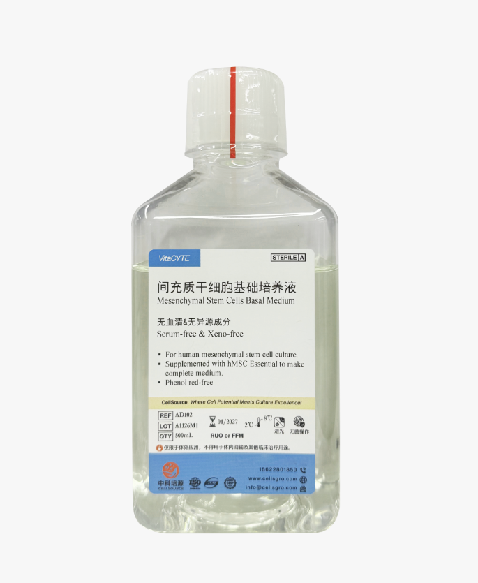 Serum-Free Mesenchymal Stem Cell Medium is specially designed for the in vitro culture of mesenchymal stem cells. Adhering to GMP-level production standards, it adopts an animal-free and serum-free formula to eliminate the risk of exogenous contamination from the source. With well-defined and controllable components and excellent batch-to-batch consistency, the product ensures the consistency and reliability of culture results. Meanwhile, it features low EV (exosome) and low endotoxin properties, suitable for high-end biomedical scenarios such as stem cell clinical research and cell therapy, providing core support for the efficient and safe culture of stem cells.